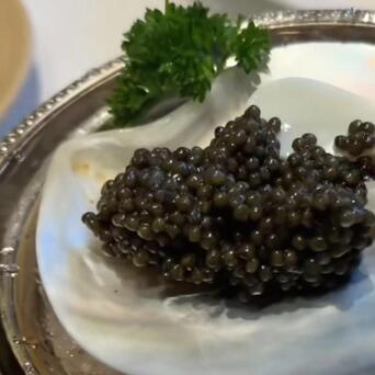 而之所以要放手背上吃,是因为人手背体温刚好贴合鱼子酱最佳品尝温度,不会太冰、不会过热,能保住原汁原味。